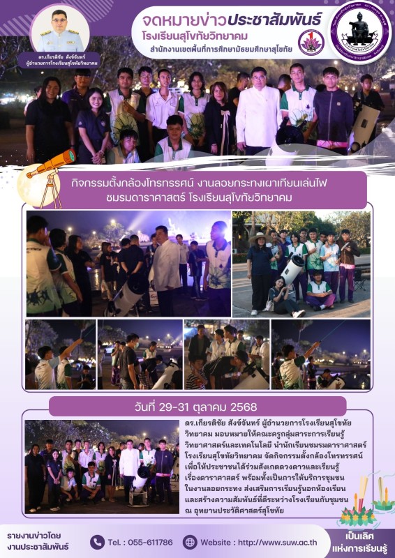 กิจกรรมตั้งกล้องโทรทรรศน์ งานลอยกระทงเผาเทียนเล่นไฟ ชมดาราศาสตร์ โรงเรียนสุโขทัยวิทยาคม