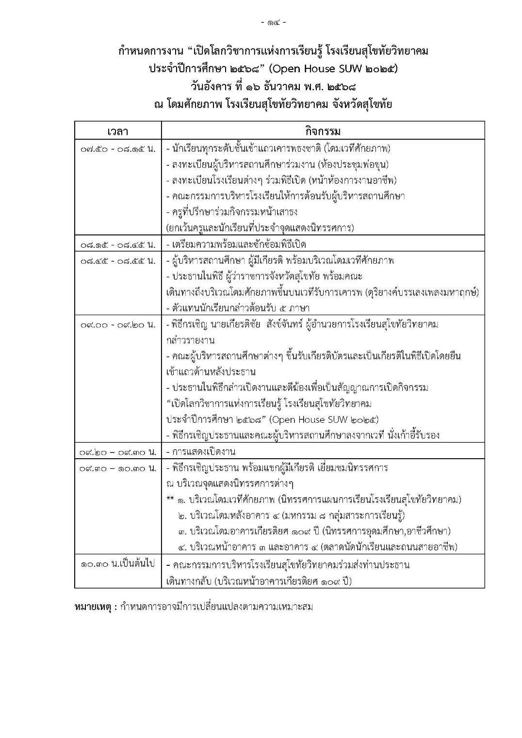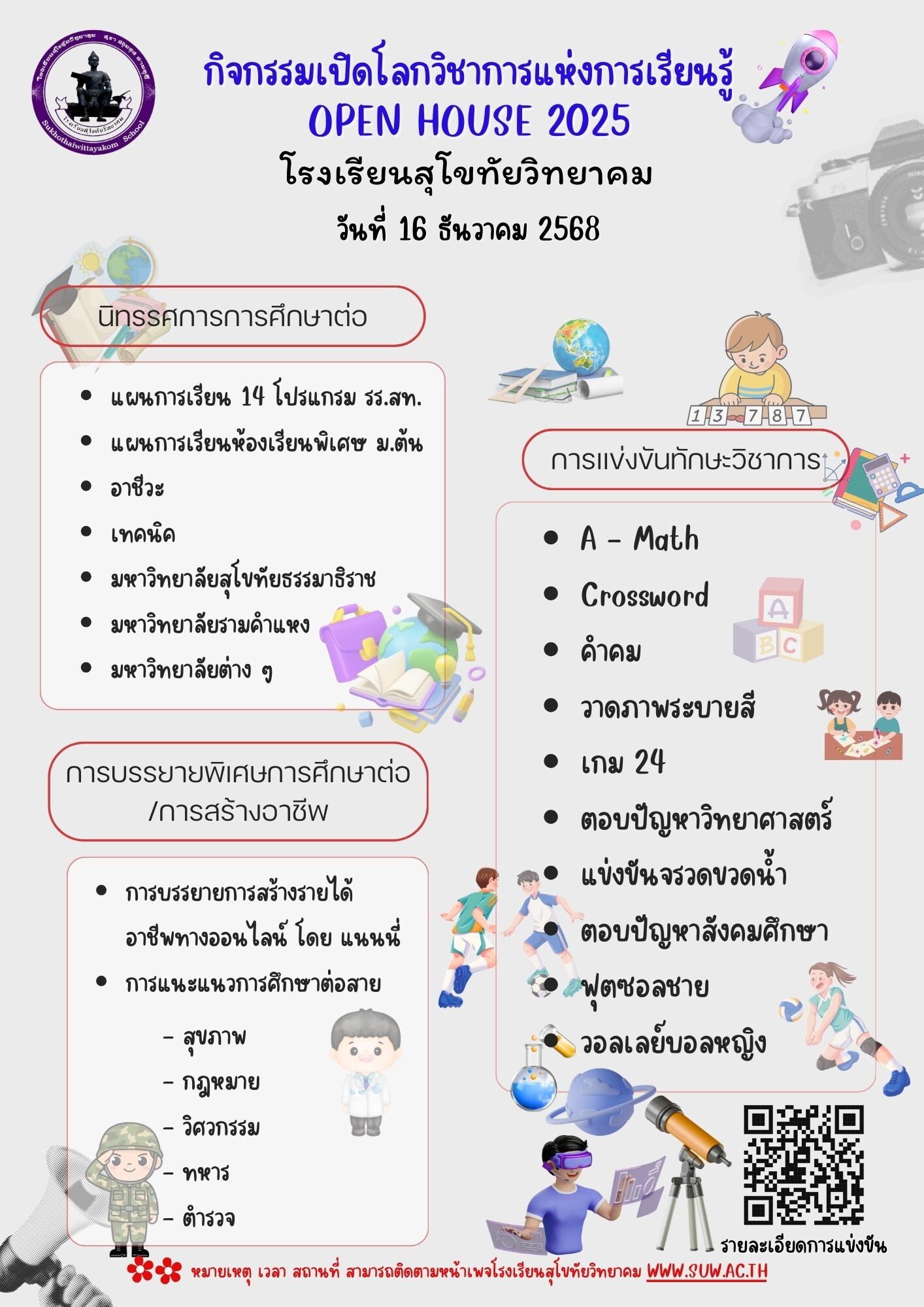 เปิดบ้านวิชาการ โรงเรียนสุโขทัยวิทยาคม ปีการศึกษา 2568