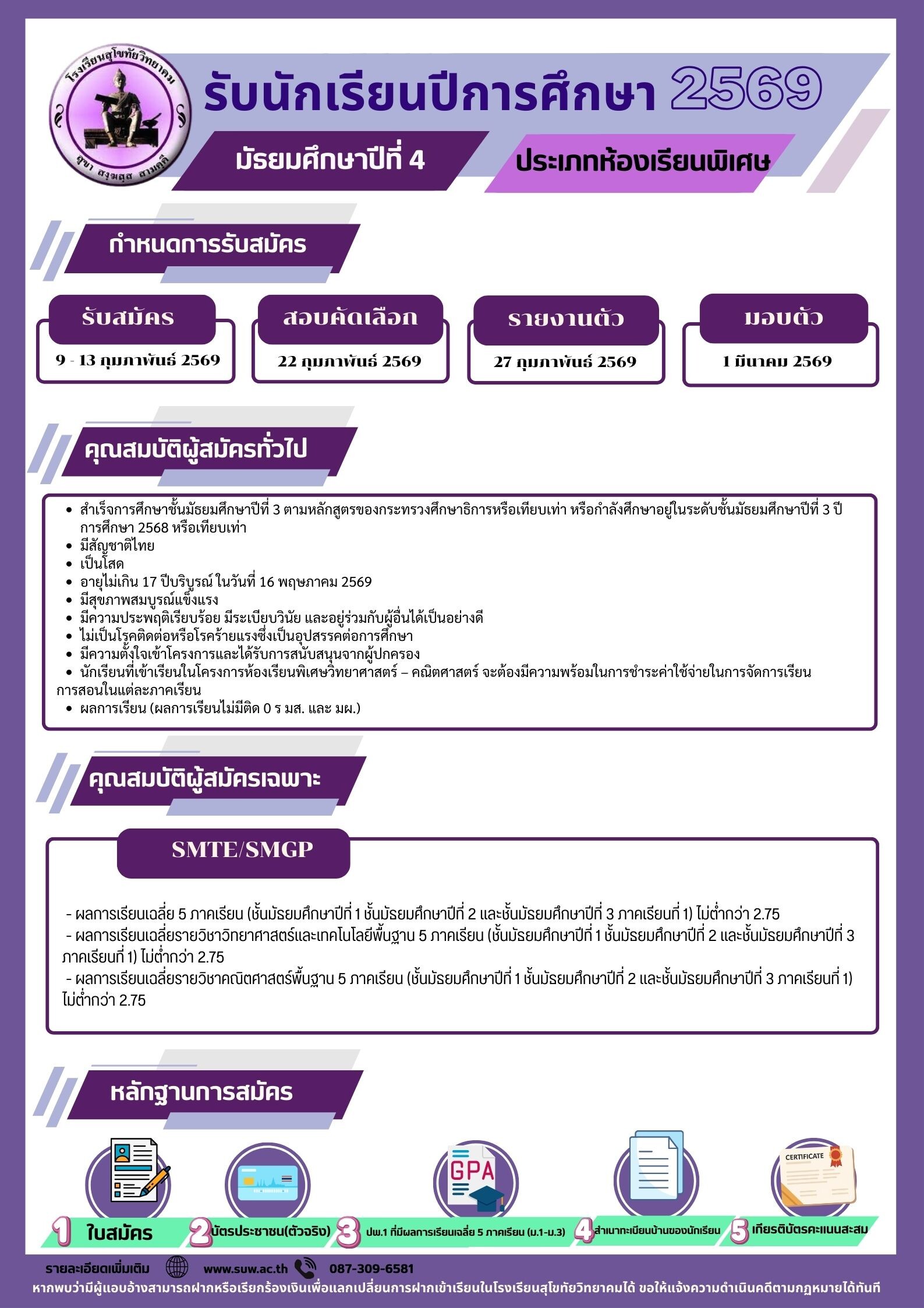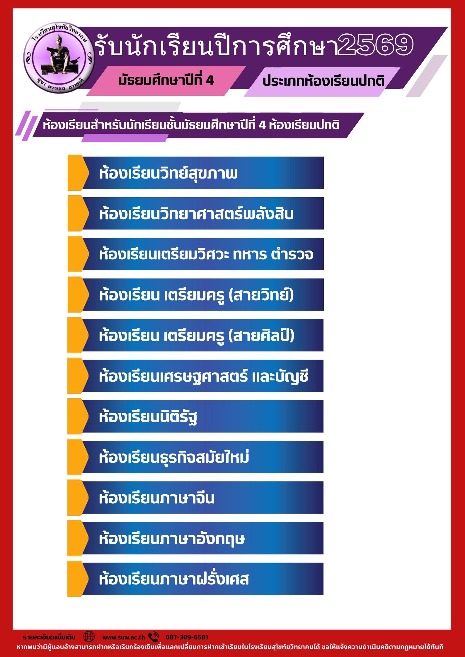 รับนักเรียนระดับชั้นมัธยมศึกษาปีที่ 4 ปีการศึกษา 2569
